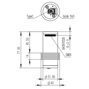 Aparat fotograficzny można łatwo podłączyć do 1,25-calowego wyciągu okularowego, ale jest on również dostarczany z adapterem c-mount.