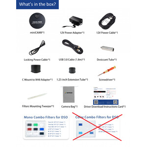 miniCAM8 oparty jest na 8-megapikselowej matrycy Sony IMX585 i wyposażony jest w pełny system chłodzenia termoelektrycznego, który może osiągnąć różnicę temperatur wynoszącą -45°C w stosunku do temperatury otoczenia, a także zintegrowane 8-pozycyjne koło filtrów do zdjęć LRGB i wąskopasmowych.