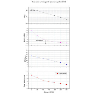 Technologia podświetlenia Exmor R Sony daje jej doskonałą wydajność w zastosowaniach do głębokiego nieba. Szczyt QE ASI183 osiąga znakomite 84%. W kanale Ha, QE wciąż przekracza 60%. Wysokie QE oznacza, że w rzeczywistości wykorzystywane jest więcej światła, które wpada do teleskopu i dociera do matrycy. ASI183 wykorzysta większy procent światła, które do niej dotrze, poprawiając jakość sygnału.
