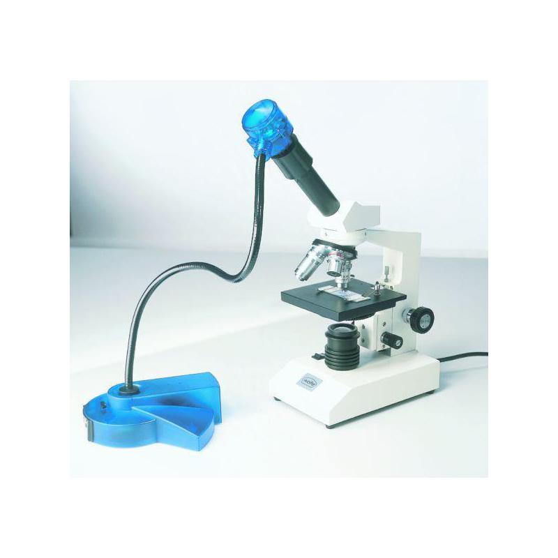 Universally applicable, CCD Sensor 1 / 3 "PAL, 628 horizontal x 582 vertical pixels, 365.000 pixels, 330 TV lines, swan neck length 52 cm, light sensitivity 1 lux, multi-focus lens 8mm D-mount thread, either 100% or zoom 25% increase to fill the screen, white balance and automatic iris, color of housing transparent blue, 3.7 m connection cable with adapter S-Video, RCA and SCART, 220/230V power supply, adapter WF10x microscope optics.