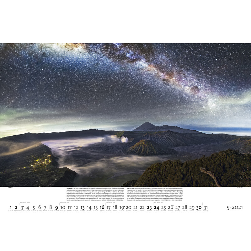 Duży format tego kalendarza ściennego (50 x 70 cm) pozwala w pełni docenić 12 imponujących zdjęć nocnych. Kalendarz poniżej został celowo zaprojektowany w sposób stonowany, aby pozostawić dużo miejsca motywom.