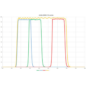 Cztery filtry dla uzyskania kolorowych zdjęć: z zestawem filtrów LRGB sfotografujesz niebo w kolorze posiadając matrycę monochromatyczną. Monochromatyczne astrokamery CCD naświetlają obiekty głębokiego nieba w bardzo wysokiej rozdzielczości, ponieważ wszystkie piksele matrycy są wykorzystywane do uzyskania zdjęcia. Natomiast w kolorowych matrycach CCD rozdzielczość jest zminimalizowana, ponieważ około ⅓ pikseli jest wyposażona w filtry kolorowe.