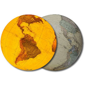 Globus Royal przedstawia aktualną sytuację polityczną naszej planety w ciepłych kolorach i nostalgicznym stylu. Po włączeniu oświetlenia granice polityczne schodzą na dalszy plan, a widoczny staje się szczegółowy, niewyczuwalny relief z wzniesieniami i zagłębieniami.