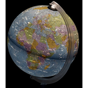 Der Idena Leuchtglobus Sterne ist mit zwei möglichen Kartenbildern ausgestattet. Das politische Kartenbild des unbeleuchteten Globus zeigt die Positionen der verschiedenen Länder der Erde sowie deren Hauptstädte. Die abgebildeten Länder und Meere grenzen sich farblich voneinander ab. Die Beschriftung ist in deutscher Sprache gehalten. Der Äquator ist durch eine schwarze Linie dargestellt. Mit eingeschalteter Beleuchtung des Globus erscheint eine Sternenkarte mit Bezeichnung der Sternenbilder. Der leuchtende Sternenglobus stellt eine eindrucksvolle Raumdekoration dar und ist auch ideal als Nachtischlampe oder beruhigendes Nachtlicht geeignet. Der Idena Leuchtglobus Sterne besitzt einen Durchmesser von 25cm und ist über den Haltebügel am Standfuß drehbar. Die Gesamthöhe des Globus beträgt etwa 28cm. Im Inneren des Globus befindet sich eine energiesparende und langlebige LED Lampe zur Beleuchtung, die bei Bedarf ausgetauscht werden kann. Die Bedienung der Beleuchtung erfolgt über einen Kippschalter an der ca. 1,30 m langen Stromzuleitung.