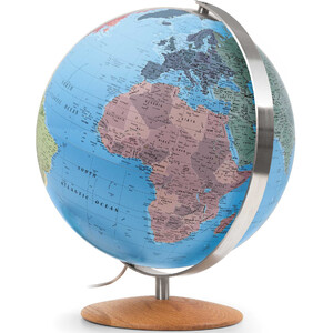 Ręcznie laminowany globus świetlny CTN 37 02 łączy tradycyjne rzemiosło z nowoczesnym designem, tworząc globus, który zarówno informuje, jak i inspiruje. Jego kula o średnicy 37 cm została starannie ręcznie laminowana – segmenty mapy zostały nałożone pojedynczo i precyzyjnie dopasowane – dzięki czemu każdy globus jest prawdziwym unikatem. Wyposażony w elegancką drewnianą podstawę z dębu i meridian z szczotkowanej stali nierdzewnej, stylowo komponuje się z każdym wnętrzem.