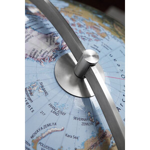 Ten niezwykle reprezentacyjny globus na podstawie w umiejętny sposób łączy tradycję z nowoczesnością. Tradycyjnie ręcznie laminowana kula o imponującej średnicy 75 cm została połączona z nowoczesną podstawą ze szczotkowanej stali nierdzewnej.