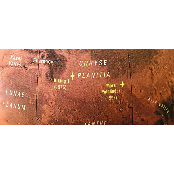 The mosaic used for this 6-inch (15-cm) globe consists of more than 6,000 images acquired by cameras aboard NASA’s Viking orbiters. Added shading details come from NASA’s Mars Global Surveyor.