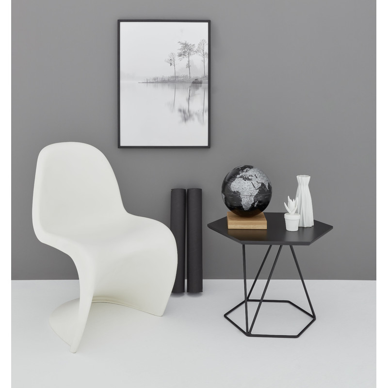 Już w IV wieku przed naszą erą grecki filozof Platon zajmował się idealnym kształtem Ziemi. Równie doskonałą formę ma globus młodej projektantki Louise Onken. Kula ziemska jest przymocowana magnesem do solidnej podstawy z drewna dębowego (180 x 180 x 40 mm), dzięki czemu można ją dowolnie obracać i łatwo zdjąć.