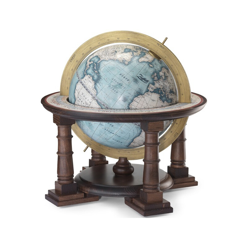 Podobnie jak małe, ale jasne gwiazdy, również ten globus przyciągnie uwagę Państwa gości. Solidna konstrukcja z drewna bukowego wznosi się niczym teleskop, który podtrzymuje globus, ale to współczesna mapa jest prawdziwym hołdem dla astronomów: szczegółowe dane geograficzne na błękitnym tle.