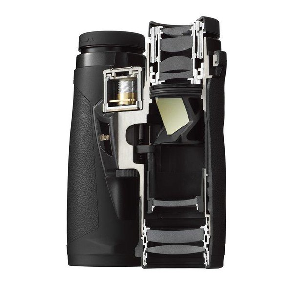 Soczewki ze szkła ED (o bardzo niskiej dyspersji), dielektryczna, wysoce odblaskowa wielowarstwowa powłoka pryzmatów oraz zaawansowana wielowarstwowa powłoka soczewek firmy Nikon zapewniają doskonałą przepuszczalność światła oraz ostry obraz o wysokiej rozdzielczości i doskonałym kontraście, nawet przy słabym oświetleniu otoczenia. Wypukłość pola obrazu jest zminimalizowana dzięki soczewce wyrównującej pole obrazu, która gwarantuje doskonałą jakość obrazu aż do najdalszych krawędzi pola widzenia. Duże, łatwe w obsłudze pokrętło ostrości zakrywa regulator dioptrii, zapobiegając przypadkowej zmianie ustawienia dioptrii. Te wodoodporne i nieparujące lornetki są niezwykle poręczne i wytrzymałe, dzięki czemu doskonale nadają się do trekkingu i obserwacji natury.