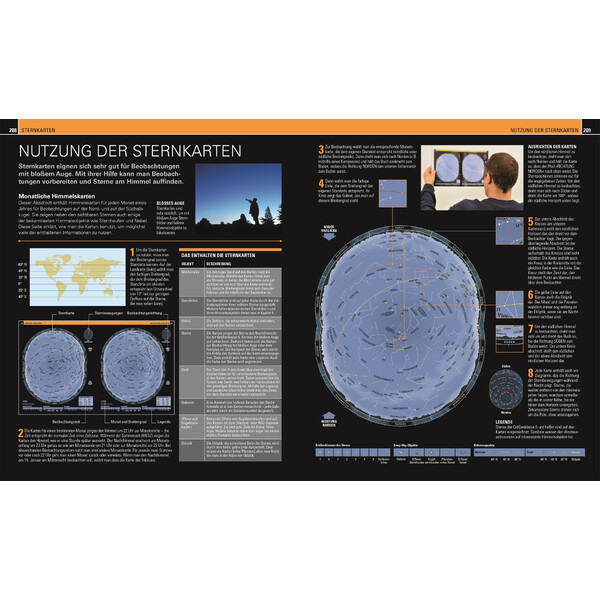 - Praktyczne mapy nieba i instrukcje pokazują, które gwiazdy i galaktyki są widoczne, kiedy i za pomocą jakiego instrumentu, i pomogą Państwu znaleźć odpowiednie obiekty.