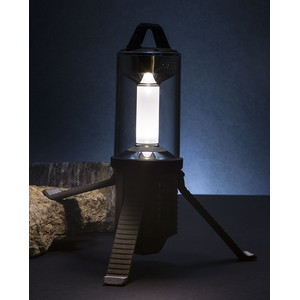 Ta nowoczesna latarnia LED będzie niezbędnym elementem wyposażenia każdej wyprawy campingowej. Koniec z zapachem nafty lub gazu i spalonymi knotami. Ta latarnia LED tworzy romantyczną atmosferę dzięki ciepłej, białej diodzie LED. Maksymalna jasność wynosi 200 lumenów. Dostępnych jest kilka ustawień światła. Aby wyrównać nierówności podłoża, nóżki latarki można ustawić w różnych pozycjach. Do transportu można je złożyć wokół głowicy lampy. Na uchwycie znajduje się karabińczyk do zawieszenia latarki na słupkach namiotu lub podobnych elementach.