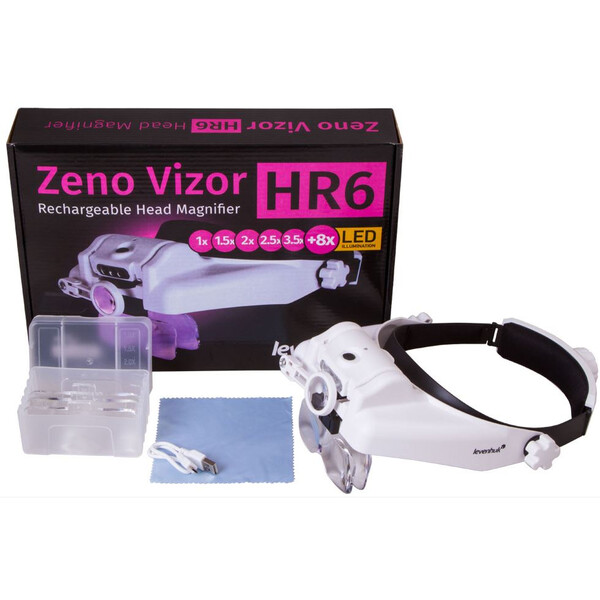 Lupy na głowę serii Levenhuk Zeno-Vizor-HR dzięki akumulatorowemu oświetleniu dają doskonałe oświetlenie. Soczewki można w dowolny sposób łączyć ze sobą co daje duży dostęp do szerokiej gamy powiększeń. W razie potrzeby soczewki można odchylić do góry, aby mieć możliwość obserwcji bez użycia lupy.