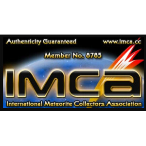 Autentyczność kamienia gwarantuje członkostwo dostawcy w I.M.C.A. (International Meteorite Collectors Association): numer członkowski 3850 i 8785.