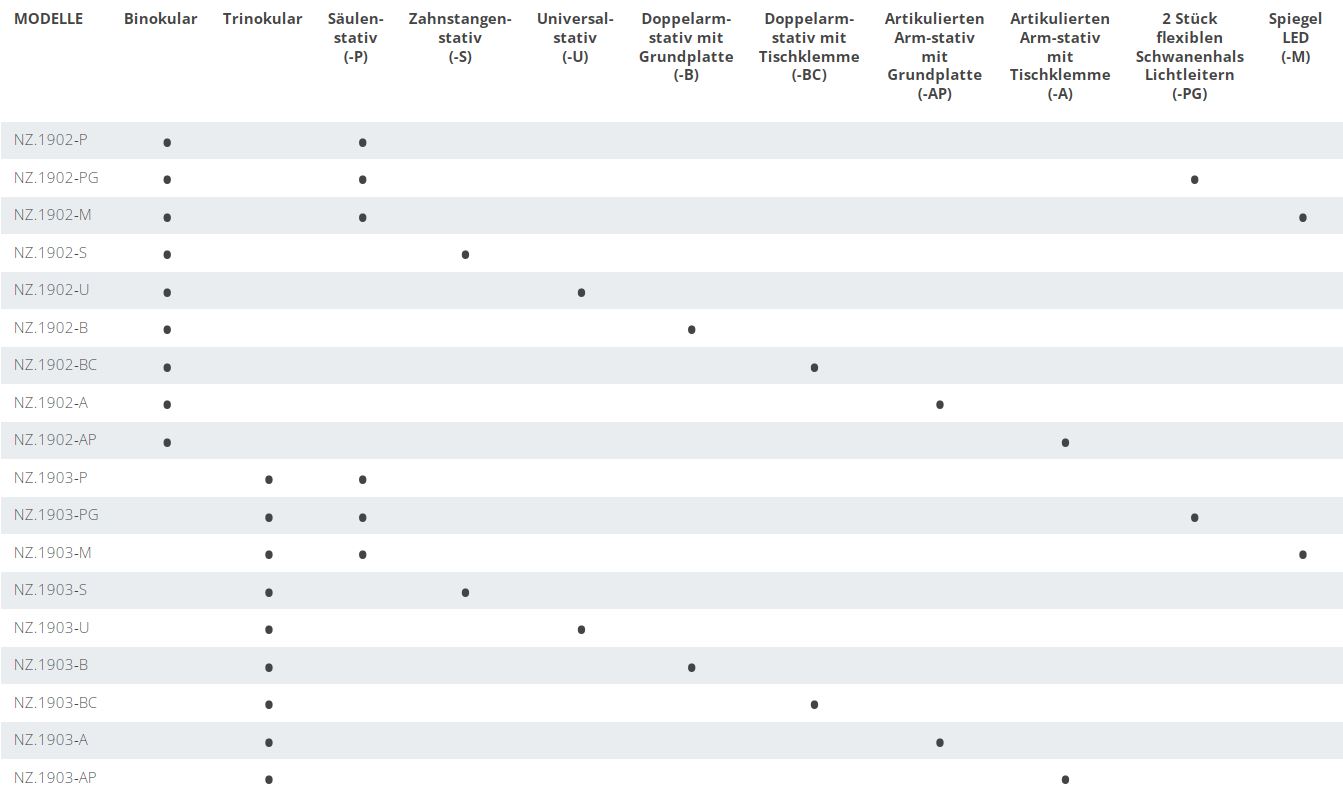 Mikroskop stereoskopowy zoom NZ.1903-M, 6,7-45x, Kolumna, Światło przechodzące i odbite, Trino, Zwierciadło do Ciemnego Pola, Embriologia