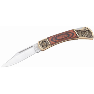 Ciemne drewno pakka pięknie harmonizuje z ozdobnymi okuciami. Sprawdzone ostrze w kształcie szczupaka tego scyzrytu kieszonkowego Herbertz wykonane jest z nierdzewnej stali AISI 420. Klasyczna blokada grzbietowa zapewnia bezpieczeństwo podczas użytkowania.
