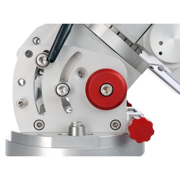 Blokada osi nie wywiera żadnego nacisku na koło ślimakowe. Jest to kolejny powód precyzyjnej pracy montażu. Można go precyzyjnie ustawić tak, aby działał jak sprzęgło ślizgowe. Po prostu cieszcie się obserwacją, bez „zatrzaskiwania” blokad (jak w innych montażach). Zastosowano tu nową, skomplikowaną technikę konstrukcji montażu. Mocne trzymanie osi jest zapewnione bez silnego zaciskania.