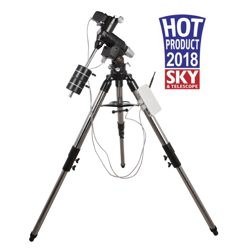 EXOS-2 jest stabilnym montażem o dużym udźwigu (sprzęto optyczny o wadze do 13kg), z precyzyjnym śledzeniem do obserwacji wizualnych i astrofotografii. Podwójne radialne łożyska kulkowe w obu osiach zapewniają precyzyjne działanie i optymalne położenie osi RA niemal bez luzów. Ten bardzo stabilny, precyzyjnie wykonany montaż umożliwia wejście w świat astrofotografii w korzystnej cenie. Opcjonalnie można go wyposażyć w prowadzenie w dwóch osiach.