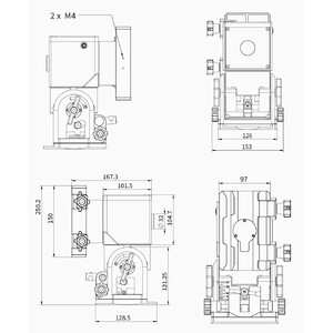 - Siodło montażu umożliwia stosowanie szyn pryzmatycznych zgodnych ze standardem Vixen lub Losmandy. Dzięki temu można zamontować niemal każdy teleskop.