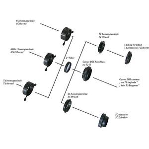 - Adaptacja 2" (adapter podstawowy ma średnicę 2" – można zamontować okulary 2" oraz, za pomocą opcjonalnej redukcji, okulary 1,25")