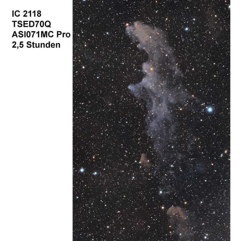 - Obserwacja z TS 70 mm Quadruplet: Apo jest zoptymalizowany do fotografii, ale oferuje również bardzo dobrą wydajność do obserwacji wizualnej z okularami 1,25". Położenie ogniska pozwala na zastosowanie luster zenitalnych 1,25" lub nasadek kątowych z pryzmatem amiciego do wyprostowania obrazu. Na przykład przy użyciu okularu Super Plössl 32 mm uzyskują Państwo ogromne pole widzenia wynoszące 3,5° przy zaledwie 14-krotnym powiększeniu. Dzięki temu mają Państwo optymalny przegląd. Przy użyciu okularu 3 mm uzyskują Państwo 148-krotne powiększenie, co pozwala na bardzo dobrą obserwację szczegółów Księżyca i planet.