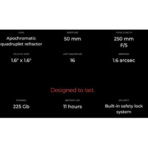 Fotografowanie mgławic i galaktyk nie musi być skomplikowane i żmudne: dzięki wbudowanemu aparatowi fotograficznemu o rozdzielczości 12,5 megapiksela i innowacyjnym technologiom Vespera Pro stanowi kompleksowe rozwiązanie, które pozwoli Państwu rozpocząć przygodę z astrofotografią. Niezależnie od tego, czy są Państwo nowicjuszami w tym hobby, czy doświadczonymi astrofotografami, Vespera Pro oferuje wszystko, czego potrzebują Państwo. Od samego początku rób zapierające dech w piersiach zdjęcia, szybciej osiągaj postępy i pokazuj swoje wyniki.