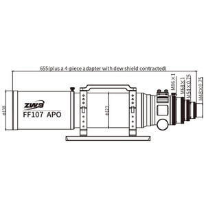 ZWO FF107 APO to apochromat czterosoczewkowy, który został opracowany specjalnie z myślą o wysokich wymaganiach astrofotografii, ale doskonale nadaje się również do obserwacji wizualnych. Jego konstrukcja optyczna składa się z czterech elementów soczewkowych, w tym dwóch soczewek ED o szczególnie niskiej dyspersji. Takie połączenie zapewnia doskonałą korekcję kolorów, ostrość gwiazd aż do krawędzi pola widzenia o średnicy 44 mm oraz całkowicie płaskie pole obrazu – bez dodatkowego spłaszczacza.