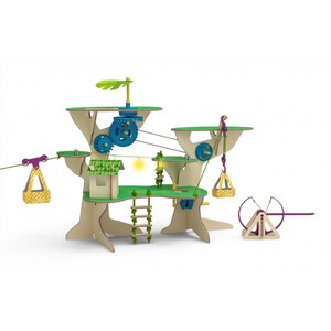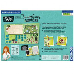 Pepper Mint besucht ihre Tante, die in einem Baumhaus im Dschungel lebt. Das Baumhaus ist nicht ans Stromnetz angeschlossen, aber mit Flaschenzügen, Seilwinden, Rollen und Zahnrädern ausgestattet. Begleitet von einer illustrierten Geschichte statten die Mädchen das Baumhaus mit mechanischen Geräten aus und lernen dabei physikalische Grundsätze kennen. Das Holz-Modell lässt sich auch unabhängig von den Experimenten bespielen – der Fantasie sind keine Grenzen gesetzt.