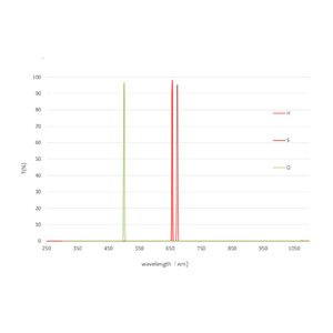 Ten zestaw filtrów oferuje Państwu filtry liniowe o szerokości połówkowej wynoszącej zaledwie 3 nanometry. Mogą Państwo zastąpić filtry z kamery miniCam8 tymi filtrami o bardzo wąskim paśmie. Zakres dostawy obejmuje filtry: Dysk filtra, śrubokręt i pęsetę.