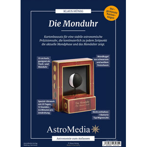 Zegar księżycowy firmy AstroMedia ma wprawdzie historyczne wzorce w wielkich zegarkach astronomicznych średniowiecza, ale jako zegar ścienny i stołowy jest prawdopodobnie pierwszym i jedynym na świecie, który w ten sposób pokazuje zmiany faz księżyca. Montaż tego zestawu kartonowego ze specjalnym mechanizmem zegarowym jest nieskomplikowany i szybko prowadzi do bardzo eleganckiego efektu.